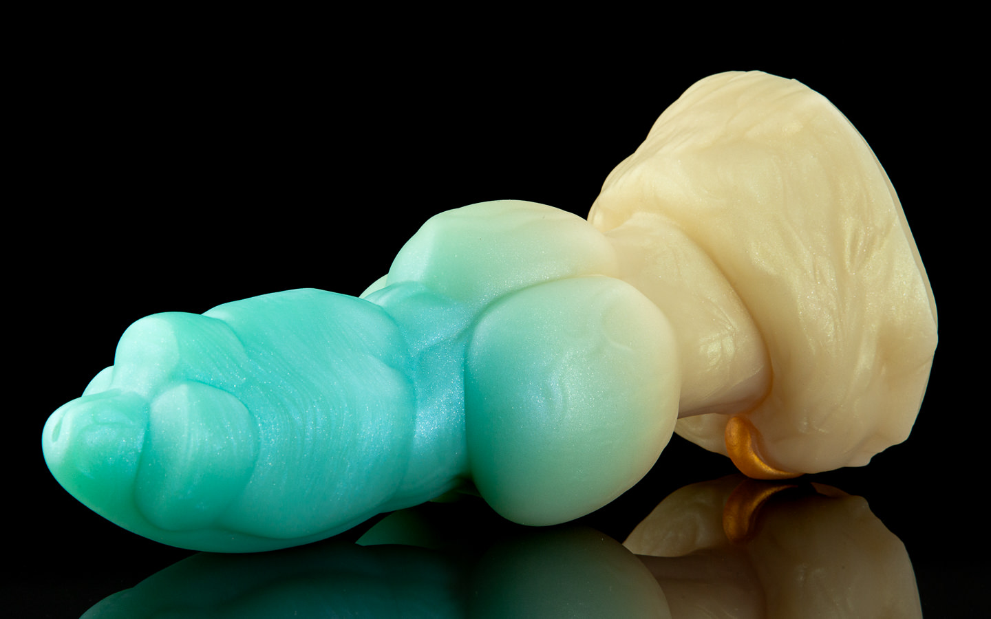 His base is pierced with a glistening gold ring.