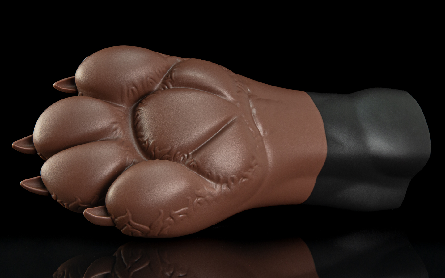 Gideon's signature comes in a coffee and chocolate swirl, with separately-cast pawpads made from an even softer silicone than the main paw - giving them a lovely 'squish'. The Silverfox style is produced in the same way but in different colours. Give those toebeans a pinch, they're super cushiony!