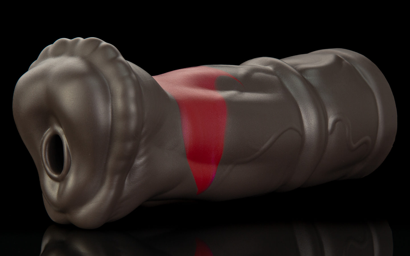 The entrance in his flare quickly opens up into a broader urethral tunnel, which is smooth, but lightly rippled with a delicate skin texture. If you slip past his medial ring, you’ll feel it squeeze over you before opening up further into his depths. By the time you hilt, his broad, flat flare presses squarely to your crotch.