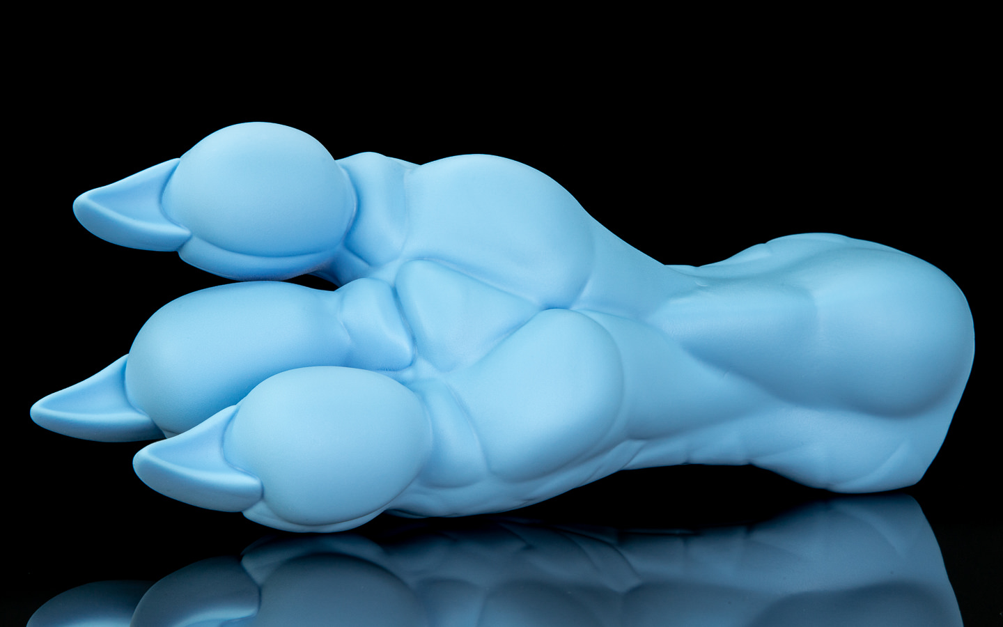 We want to be clear, these are made of solid, soft silicone throughout, and are not wearable. We looked for a suitable name and we’re calling them ‘stimulators’, because we understand a great deal of you are interested in having a large creature step on your face, or… Elsewhere on your body. If you’re going to be using him as a masturbator we recommend lubing him up, but if you’re just into the idea of touching and fondling him, you can use cornstarch or talc to make his feet wonderful and soft to the touch. And of course, the materials are 100% body-safe, platinum-cure silicone, pigmented with your colour of choice.