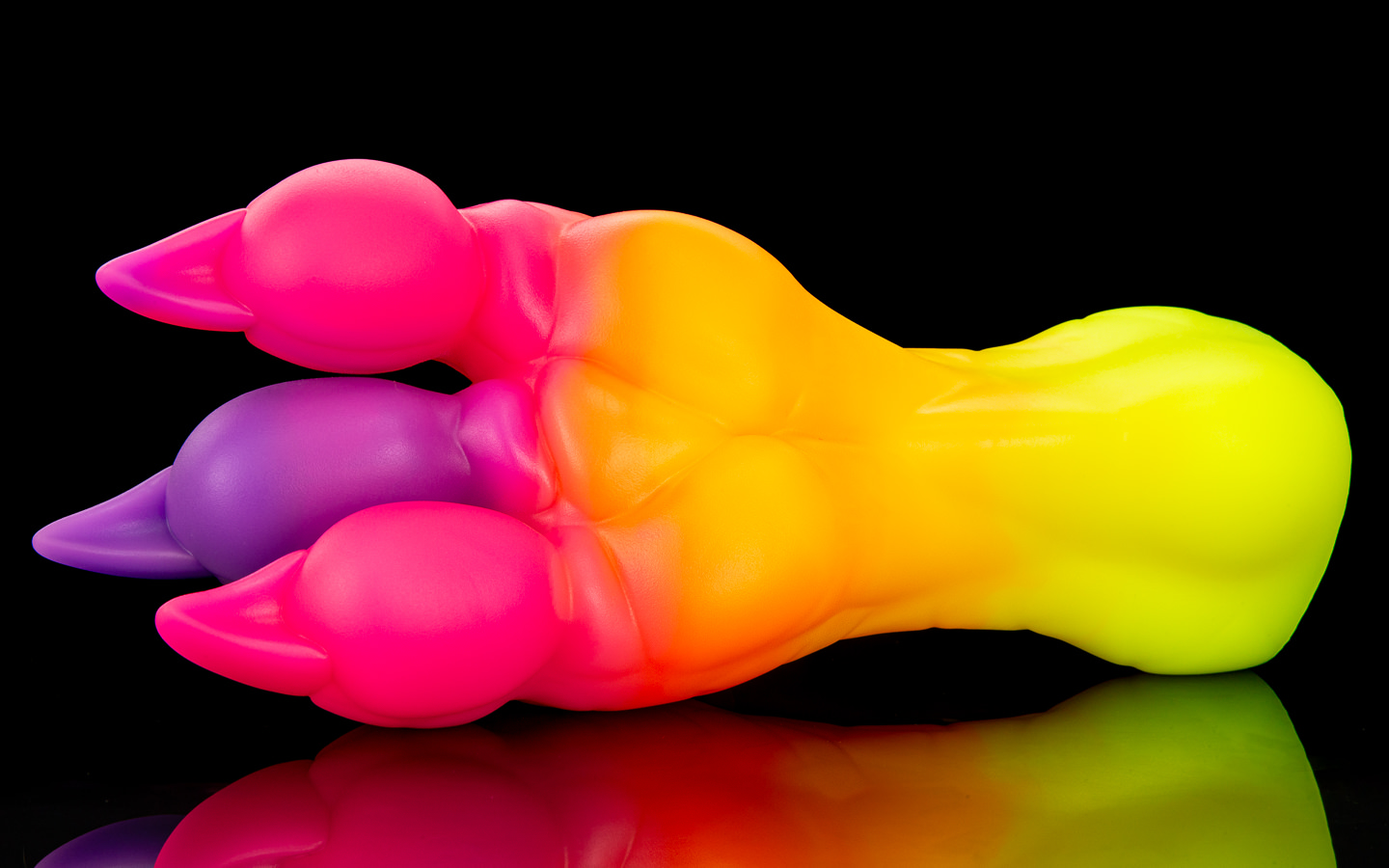 We want to be clear, these are made of solid, soft silicone throughout, and are not wearable. We looked for a suitable name and we’re calling them ‘stimulators’, because we understand a great deal of you are interested in having a large creature step on your face, or… Elsewhere on your body. If you’re going to be using him as a masturbator we recommend lubing him up, but if you’re just into the idea of touching and fondling him, you can use cornstarch or talc to make his feet wonderful and soft to the touch. And of course, the materials are 100% body-safe, platinum-cure silicone, pigmented with your colour of choice.