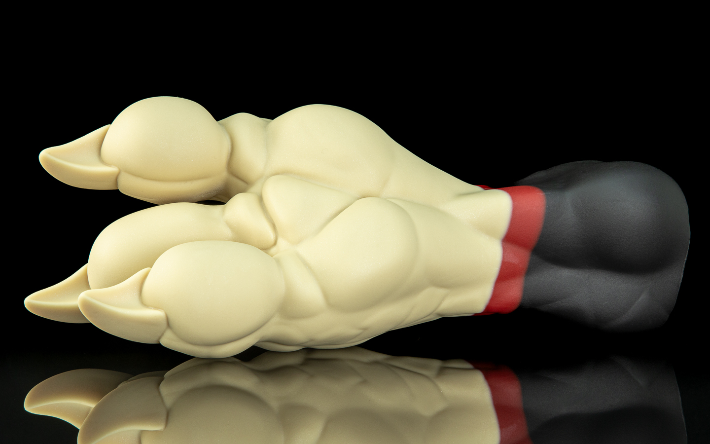 We want to be clear, these are made of solid, soft silicone throughout, and are not wearable. We looked for a suitable name and we’re calling them ‘stimulators’, because we understand a great deal of you are interested in having a large creature step on your face, or… Elsewhere on your body. If you’re going to be using him as a masturbator we recommend lubing him up, but if you’re just into the idea of touching and fondling him, you can use cornstarch or talc to make his feet wonderful and soft to the touch. And of course, the materials are 100% body-safe, platinum-cure silicone, pigmented with your colour of choice.
