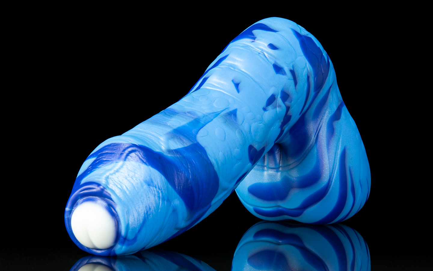 The wrinkles then transition to a scaled texture further down, making him more interesting to explore when hilted; his plated balls make a good place to sit once you’re at the bottom!