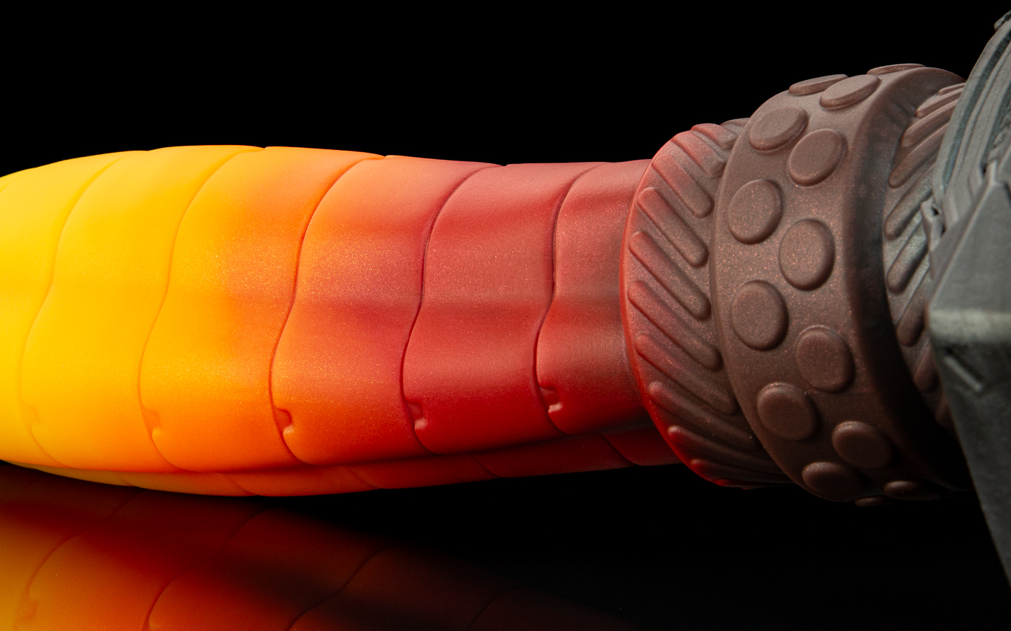 Scout's Forged colouration is hot n' ready for some hammering. A UV-reactive yellow to orange to cherry-red. Faded into a dark steel base.