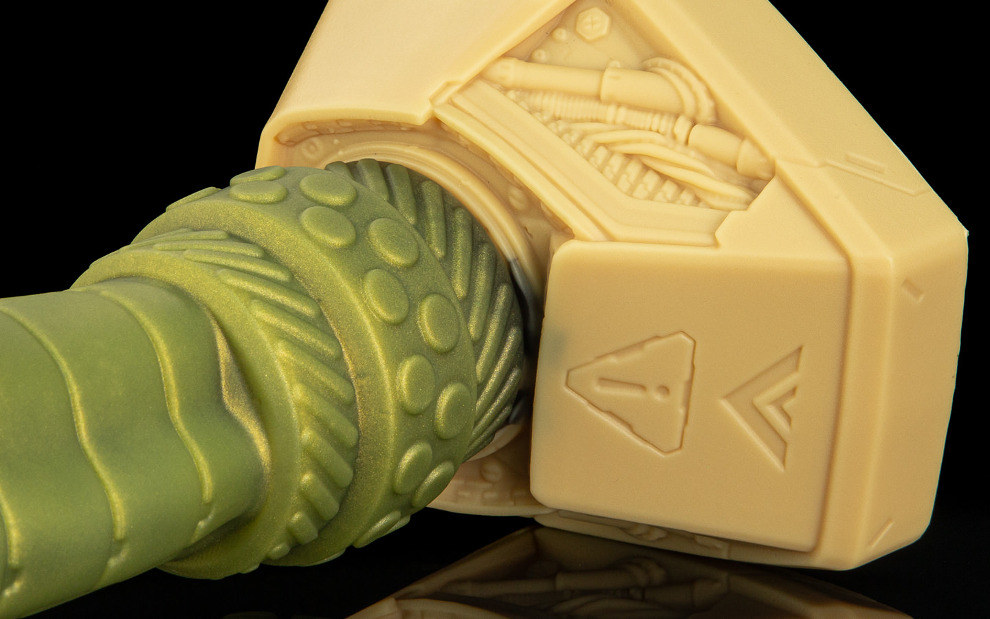 Schlick, schlick, the shaft pulsed harder, subtle, ordered veins glowing bright beneath the polymer surface. Milo’s hand slid lower, experimentally grasping the thicker portion which visibly emulated a knot, and with that Scout’s whole chassis tensed, every actuator suddenly maxed out and twitching, and–