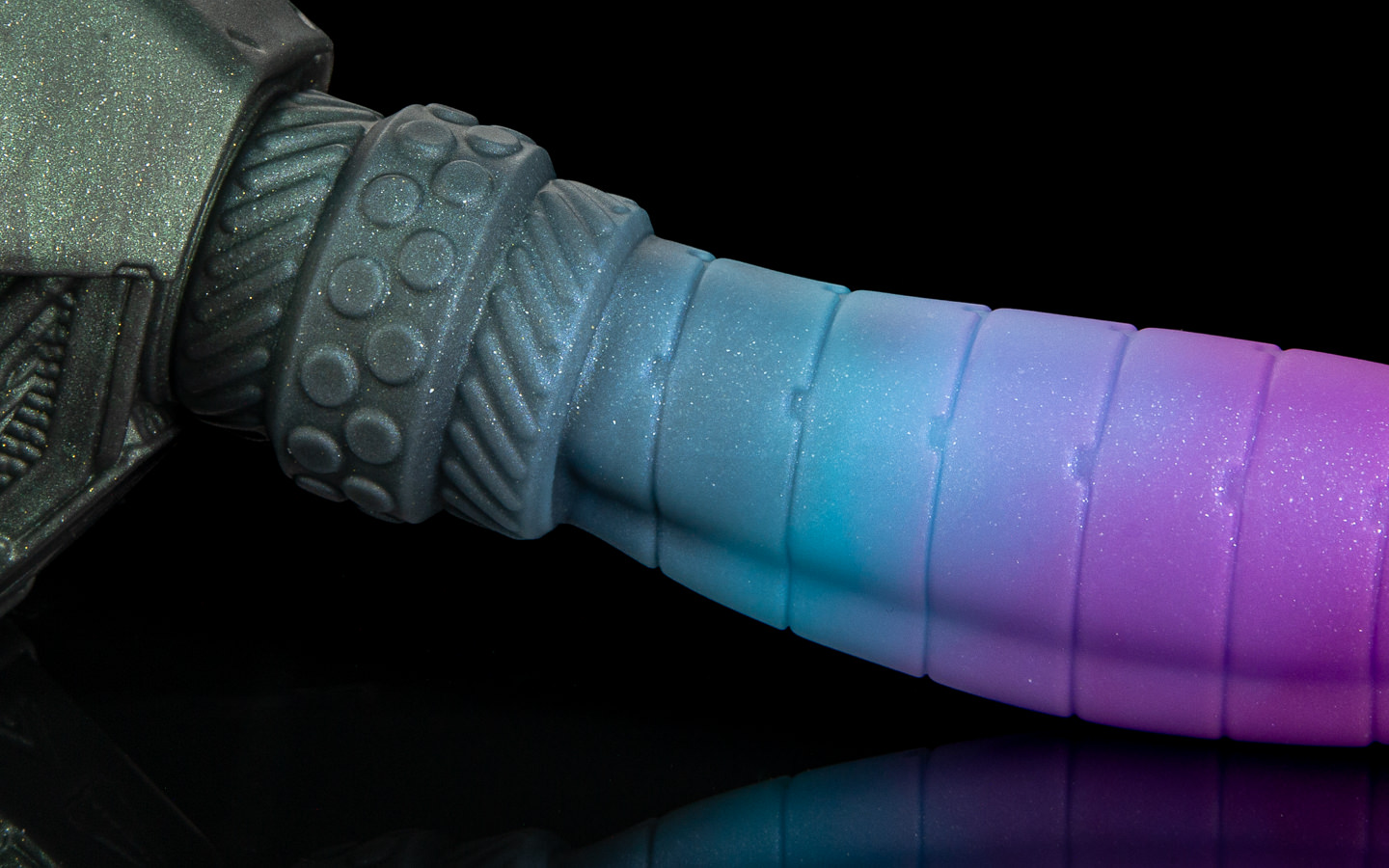 Schlick, schlick, the shaft pulsed harder, subtle, ordered veins glowing bright beneath the polymer surface. Milo’s hand slid lower, experimentally grasping the thicker portion which visibly emulated a knot, and with that Scout’s whole chassis tensed, every actuator suddenly maxed out and twitching, and–
