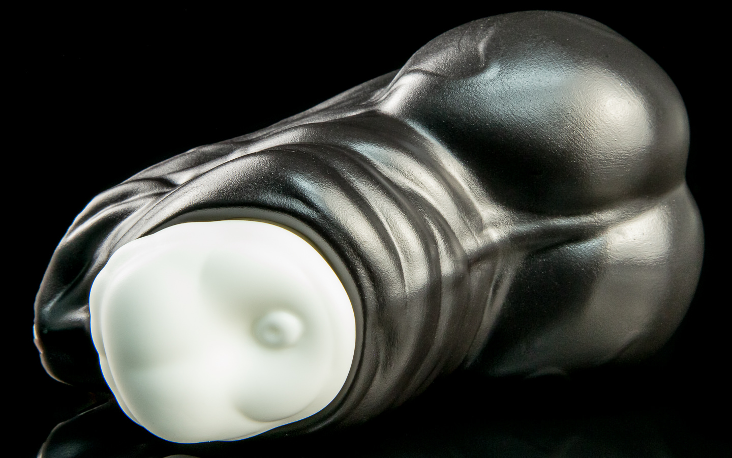 A: Both the core and the sheath itself are made from the same silicone as our penetrables – very soft, very pliable. Silicone can tear no matter what shape it’s in, so be careful with the more delicate parts of the sheath, especially around its opening! Don’t bite or overstretch it, and keep sharp/pointed objects away.