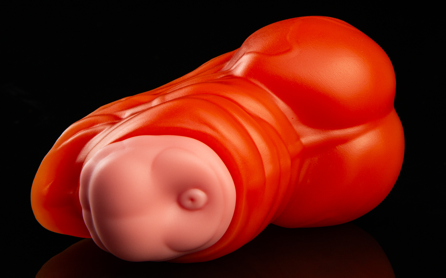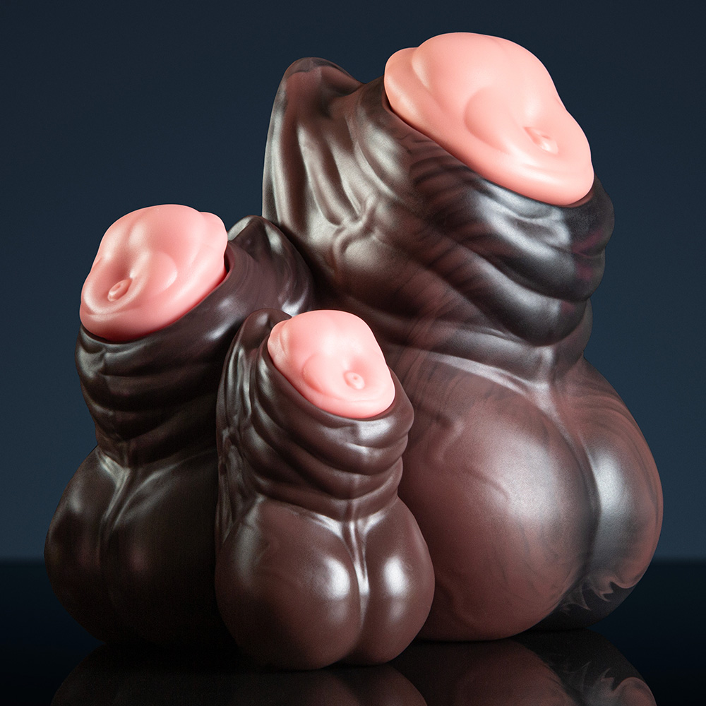 A: Both the core and the sheath itself are made from the same silicone as our penetrables – very soft, very pliable. Silicone can tear no matter what shape it’s in, so be careful with the more delicate parts of the sheath, especially around its opening! Don’t bite or overstretch it, and keep sharp/pointed objects away.